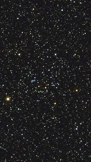III: Der Haufen ist locker konzentriert, mit wenigen Sternen im Zentrum. Er hebt sich nur schwach vom umliegenden Sternenfeld ab.