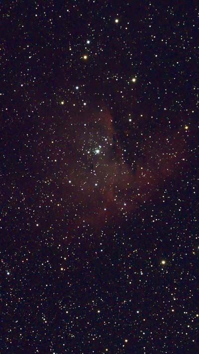 Das Hauptziel der Aufnahme war der offene Sternhaufen. Die Belichtungszeit von 25 Minuten reichten natürlich nicht aus NGC 281 deutlicher sichtbar zu machen. NGC 281 hier