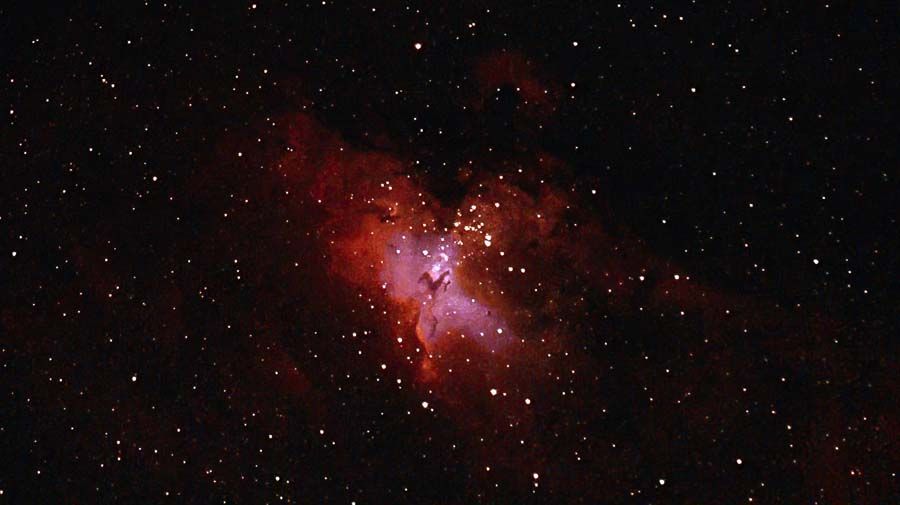Astronomen schätzen, dass der Sternhaufen NGC 6611 etwa 7.000 Lichtjahre von der Erde entfernt ist und sich in einem der Spiralarme unserer Galaxie befindet. Aufgrund dieser großen Entfernung blicken wir in die Vergangenheit: Die Bilder, die wir heute vom Adlernebel sehen, zeigen seinen Zustand vor 7.000 Jahren. Aktuelle Infrarot-Beobachtungen deuten darauf hin, dass eine Supernova-Explosion in der Nähe die Säulen der Schöpfung möglicherweise bereits zerstört hat, aber das Licht dieses Ereignisses hat uns noch nicht erreicht.