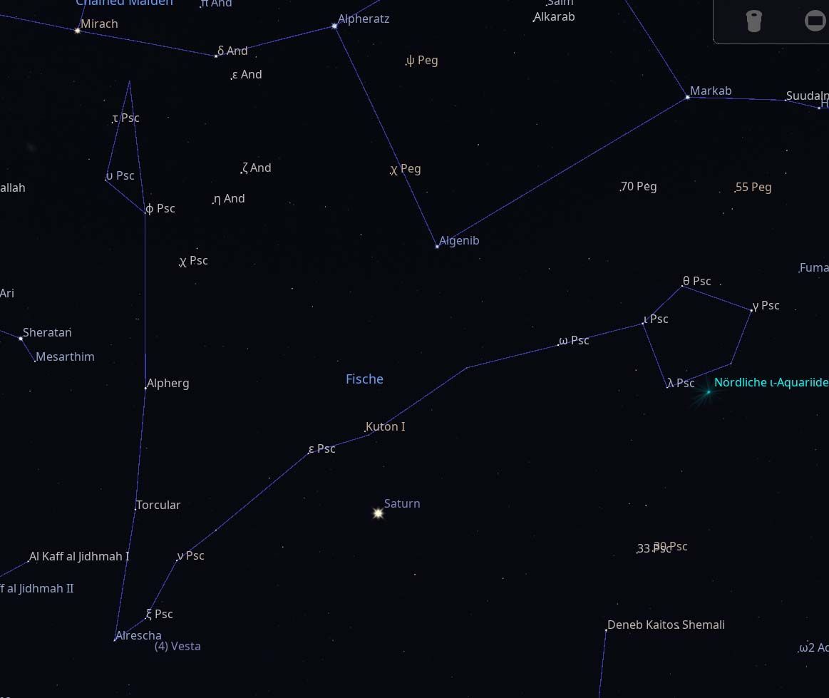 γ Piscium | +3,70 | 01h 22m / +15° 20' | G8III | Gelb-orangefarbener Riesenstern. |